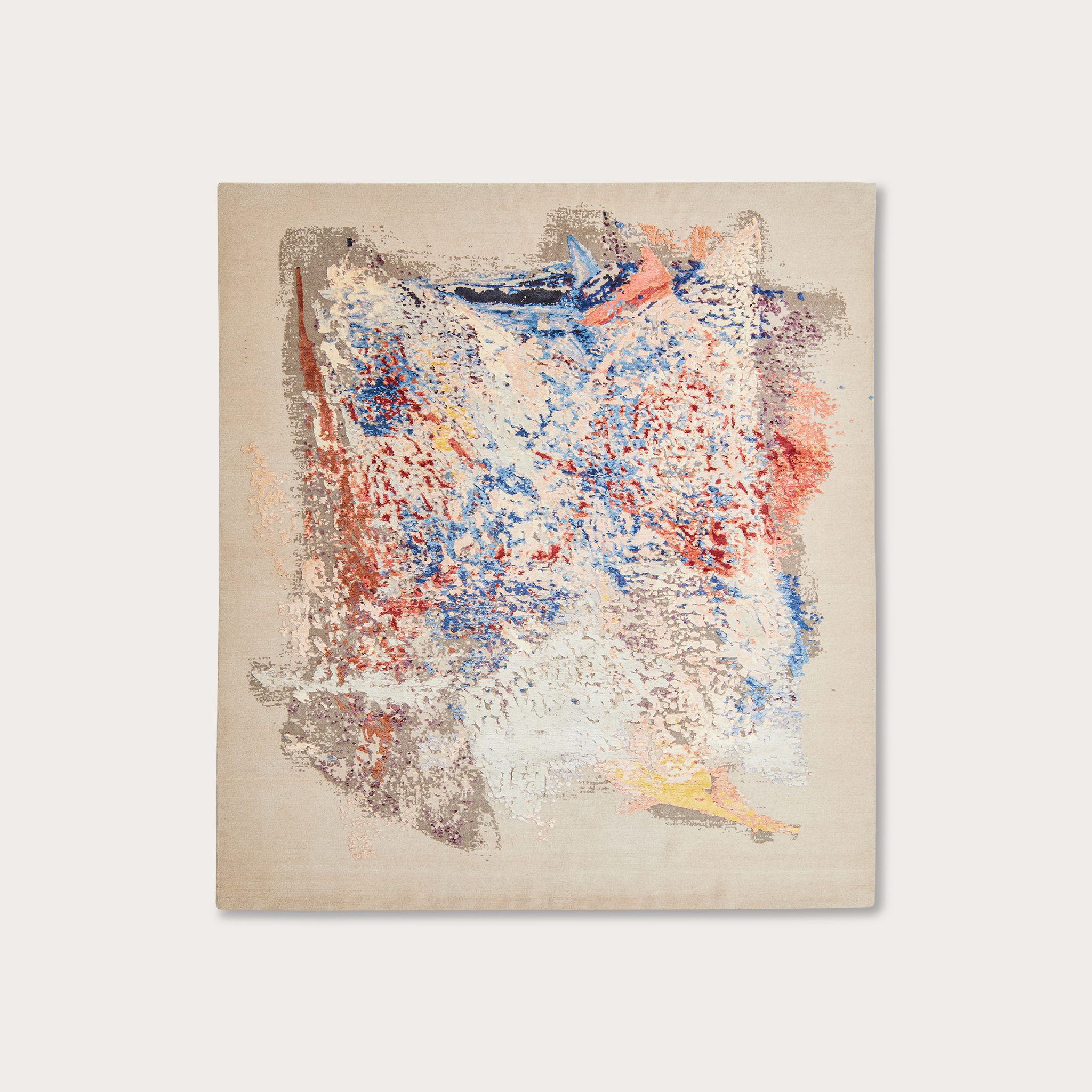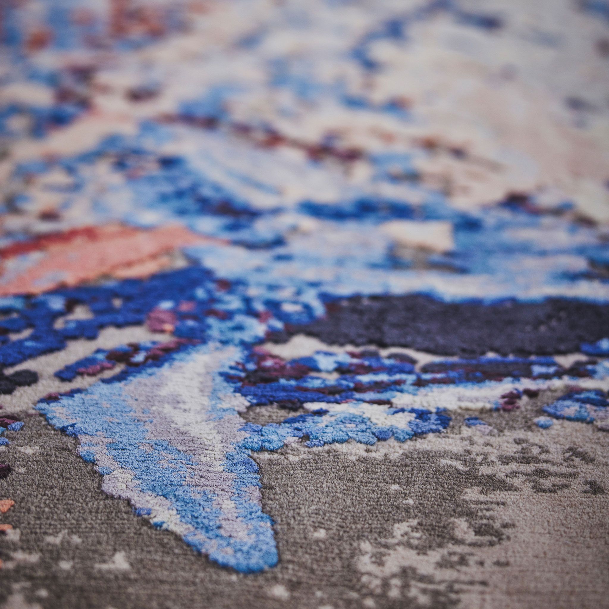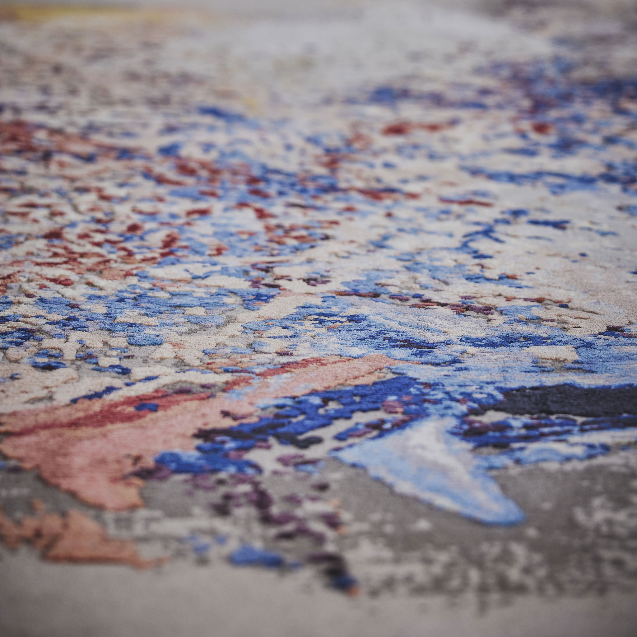 The work of Spanish-Colombian artist, photographer, documentary filmmaker, and storyteller Astor Milan Salcedo is informed by his interest in historical and political events, nature, music, and culture. Salcedo tirelessly strives to balance body, mind, and spirit. His art is emblematic of this quest. His rug, 777, in partnership with M2R, was created during the Corona lockdown, when he realized how fortunate he was to be able to practice his craft even in such difficult times. His contribution to the Viva con Agua collection is one of the most exciting projects he has had the privilege to work on in recent years.