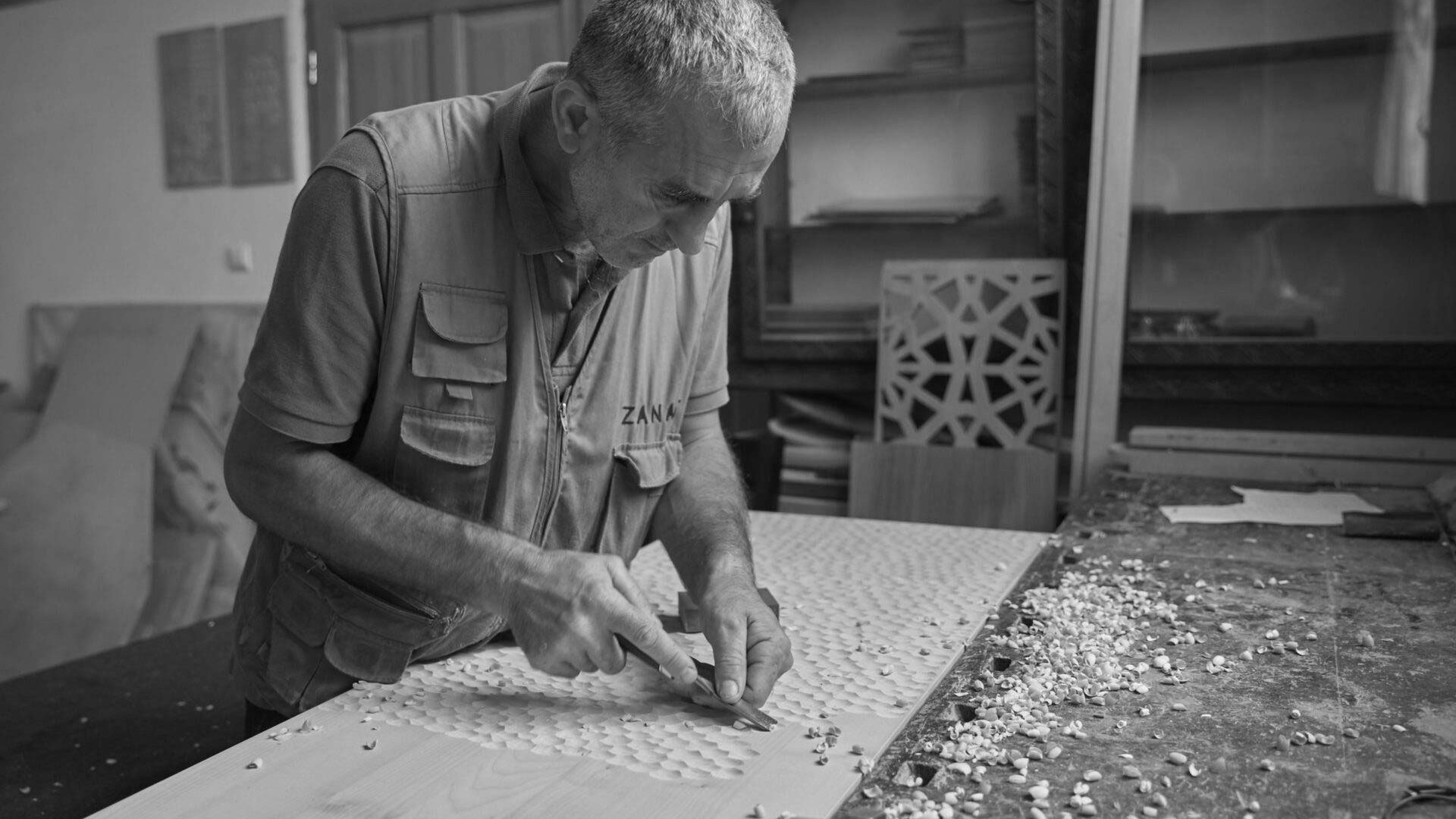 Orhan and Adem Niksic, fourth-generation heirs to the family business, established Zanat to promote a new approach to furniture design and production. Their approach emphasizes craftsmanship and showcases how traditional hand-carving techniques can enrich and expand design possibilities, while also contributing to sustainable development.