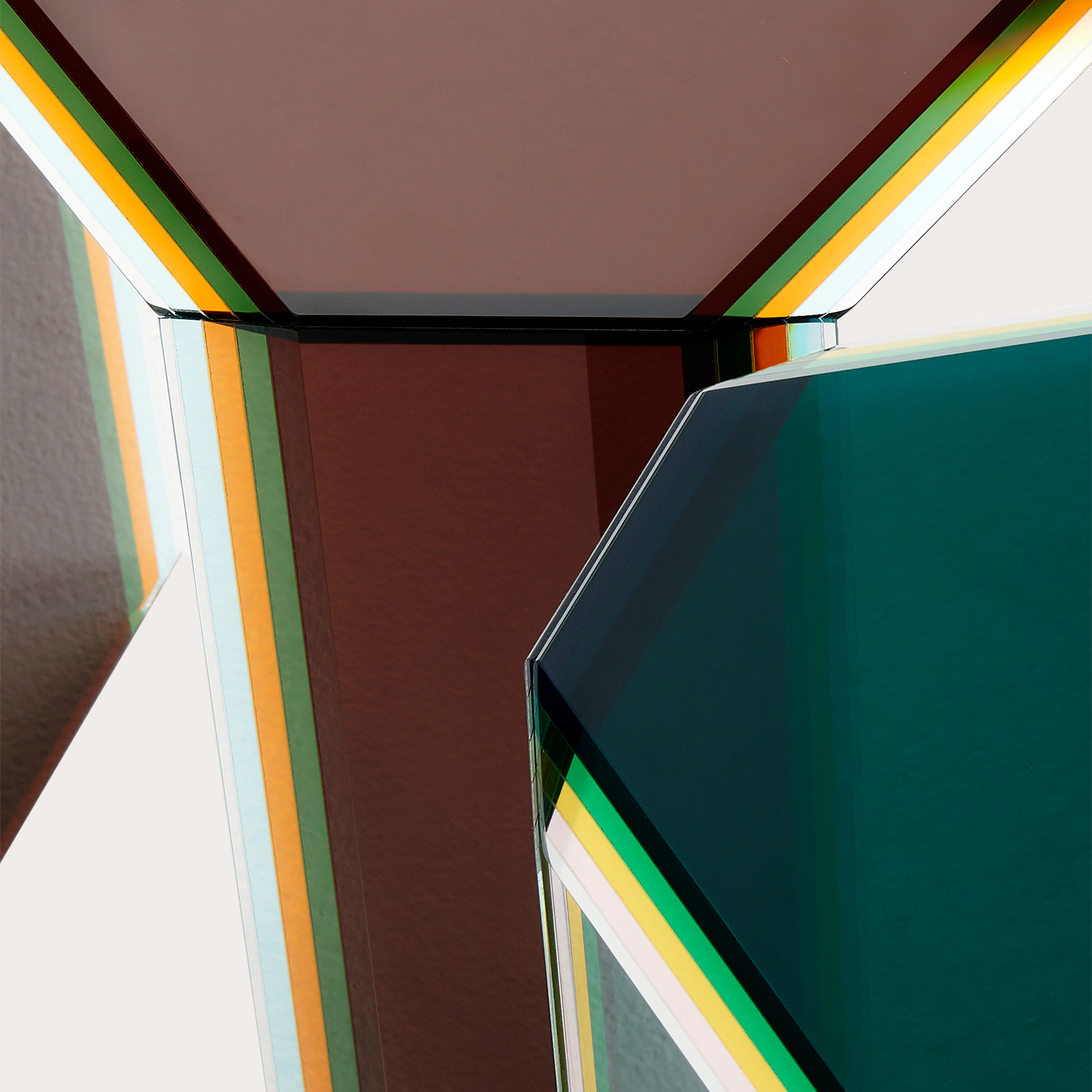 - Surface:Multi Layered and Multichromatic Colored Glass In Ocher Or Green