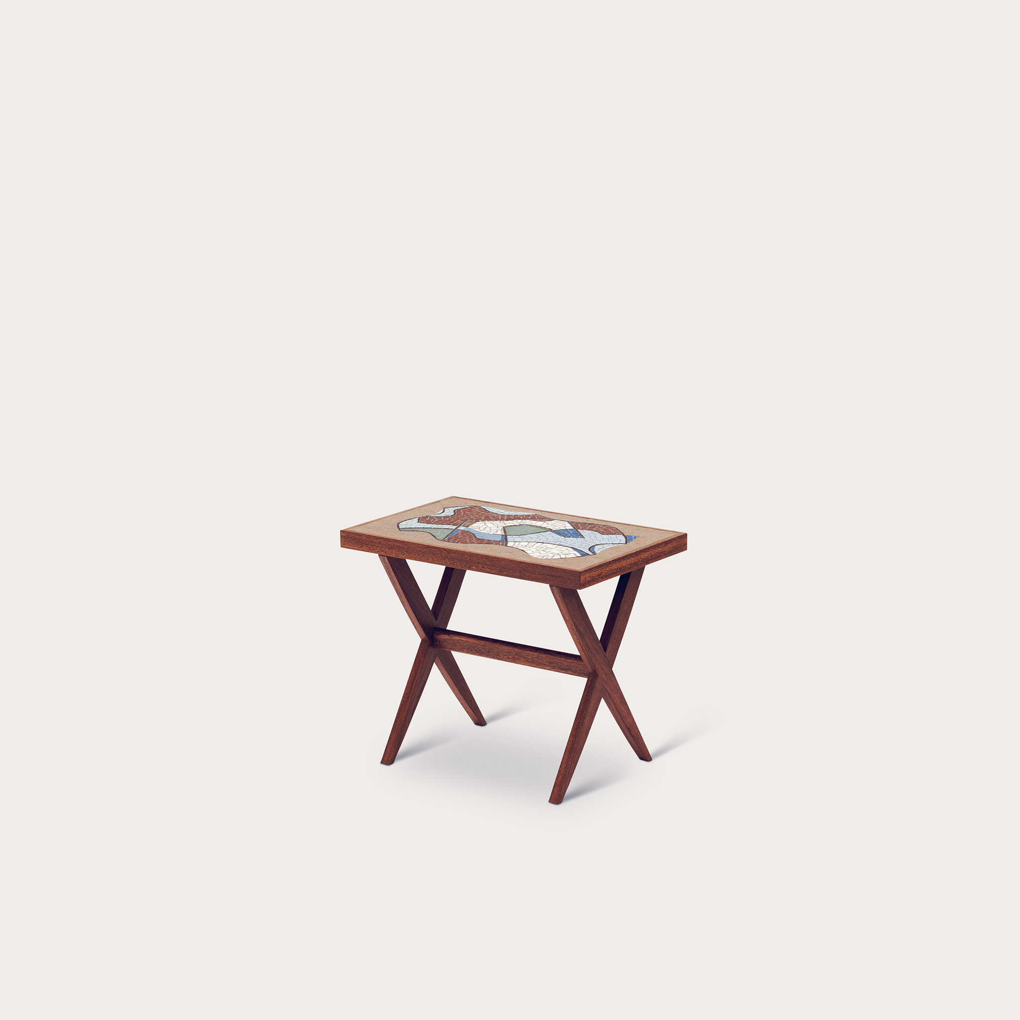 Self-taught, highly skilled and attracted to challenges and experimentation, Paulo Werneck became a leading Brazilian muralist after joining Oscar Niemeyer and a group of foremost artists in the design of the Pampulha Neighborhood Project in 1942. Niemeyer designed the buildings and Werneck designed mosaic murals for both interiors and exteriors. These Pampulha mosaic murals were the first works of abstract art in Brazil for public consumption. In his early work as a mosaic muralist he decided to try mosaics in pursuit of reviving an ancient technique which had been abandoned for centuries. Unlike most muralists, who have specialized studios, his work was produced by a small team in his own atelier, where he embraced the dual roles of artist and artisan. He was convinced that art was a public asset and devoted himself to bringing art and life in closer contact. Having begun his career as an illustrator, in 1928, at the age of 21, he began work as a craftsman in the ground-breaking firm MMM Roberto Architects. There, along with a group of young architects, he followed Le Corbusier's suggestion of "adorning the concrete walls" of the modern structures they were conceiving. This concept became a guiding principal in his work in the following decades, going on to collaborate with other modernist architects. In the last decade of his career he designed and produced in his atelier more than 150 mosaics for Banco do Brazil. Originally designed for the family’s Paqueta Island home, Paulo Werneck’s abstract mosaic patterns were applied to a series of tables. These pieces along with a new console re-imagined by his grandson Gaspar Saldanha and Etel are being introduced to Canada for the first time at AVENUE ROAD.